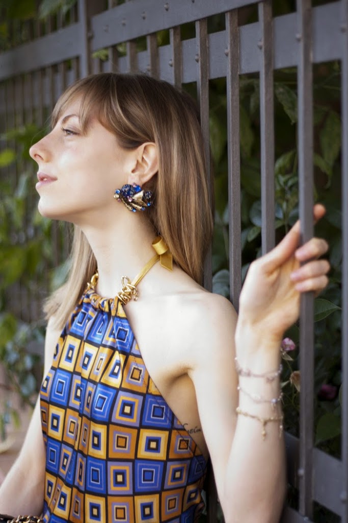 Schiena scoperta e sandali di Lorbac ai piedi che risalgono al mio diciottesimo compleanno. Dal passato arrivano anche la borsa vintage di Prada, che avete già visto in molti outfit, e questi orecchini che ho ripescato dal cassetto della bigiotteria di mia mamma e che sono subito entrati a far parte dei miei accessori preferiti.