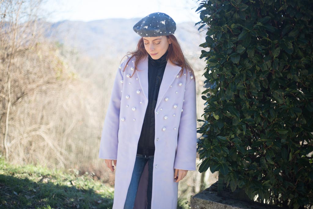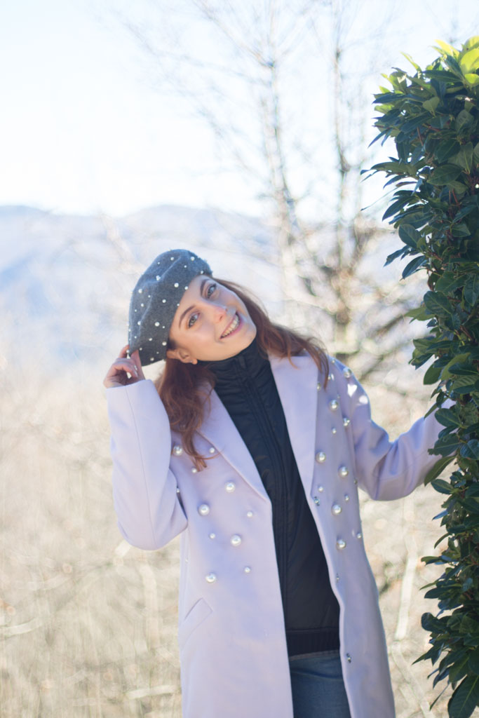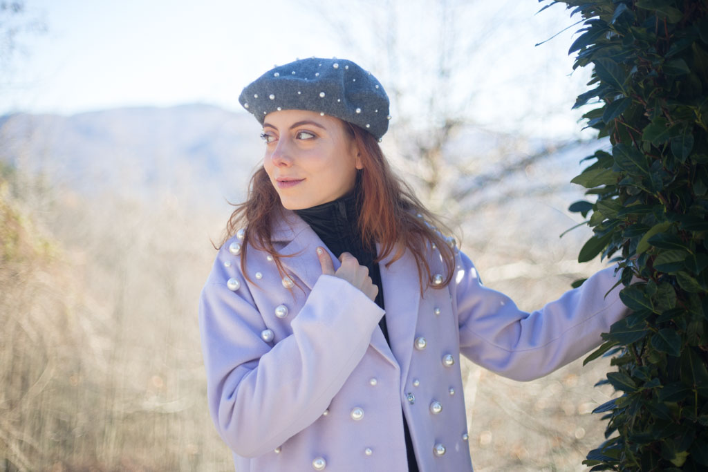 Ufficialmente è cominciato l’inverno da un po’ di giorni e si sente. Le temperature si stanno abbassando anche se qualche bella giornata la possiamo trovare anche in questo periodo. Non so tu, ma vestirmi sempre con colori scuri non aiuta il mio umore. Cosa faccio quindi? Le solite cose: prendo qualche dettaglio estroso o un capo d’abbigliamento particolare e lo indosso. Non importa infatti se sotto ho il solito paio di jeans o il solito dolcevita: un capo può apportare quel quid in più alla tua giornata. Stavolta quel qualcosa in più l’ha dato il cappotto con le perle di ASOS (che puoi trovare qui). Questo delizioso cappottino non soltanto è colorato da una una sfumatura pastello del colore Pantone 2018 Ultra Violet, ma secondo me si potrebbe rivelare come il capospalla must have di questo inverno. Completando l’outfit, ho deciso di mantenere il fil rouge delle perle. Proprio per questo motivo infatti ho deciso di indossare il basco di Zara che mi sono presa all’inizio dell’inverno. L’umore? Migliorato in men che non si dica e grazie ad un outfit carino con un probabile must have stagionale, che eventualmente puoi creare anche tu stessa con un cappotto che ha bisogno di un restyling! E a te cosa piace indossare per sconfiggere la “tristezza dell’inverno”? Anche a te certe volte vengono un po’ a noia i colori scuri? Se ti va, fammelo sapere qua sotto con un commento!In queste foto sto indossando:
