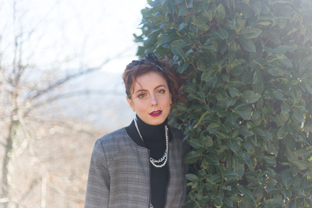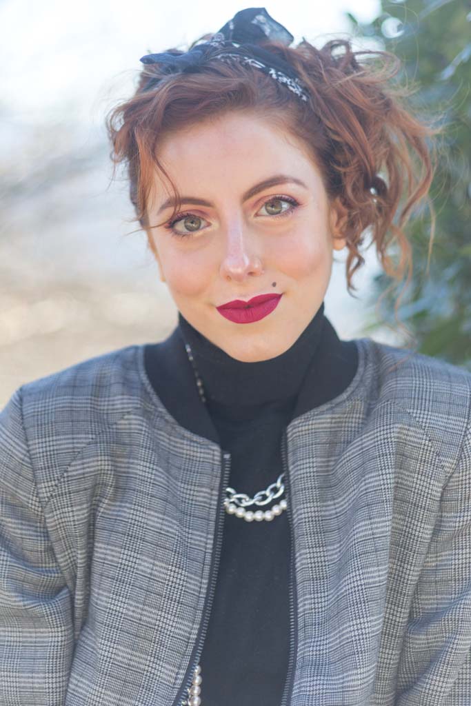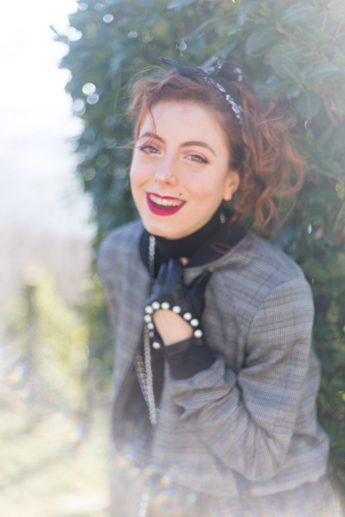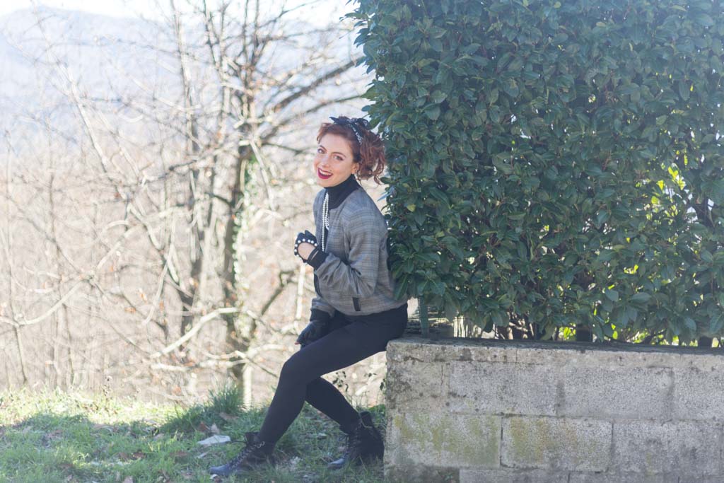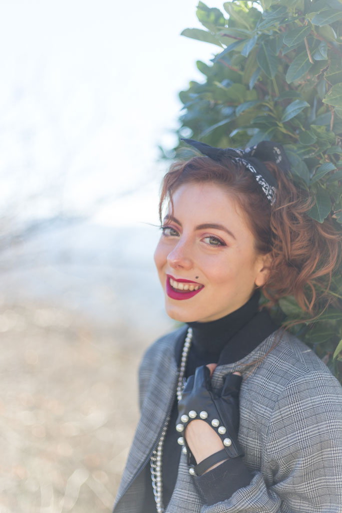 Sfida accettata! Cosa ci occorre? Innanzitutto spalline per dare più struttura alla figura. Soprattutto se la giacca o il bomber con cui le indossi è leggermente over. Il risultato? Una figura più strutturata, appunto e più autoritaria, ma con stile. Tip di stile: che sia una giacca o un bomber gioca coi colori e con le fantasie. Il secondo ingrediente sono i gioielli, meglio se di bigiotteria. Tip di stile: senza paura, mischia diversi tipi di metallo e abbina le perle con tutto quello che ti viene in mente. Sì all’abbondanza di bracciali e collane. Guanti senza dita? Sì, soprattutto se sono in pelle e hanno delle applicazioni sopra. Punta tanto anche sull’acconciatura da indossare. Puoi appuntare i capelli e indossare una bandana come ho fatto io o lasciarli sciolti: l’importante è che siano messy, ma non troppo.Cosa sto indossando in queste foto: