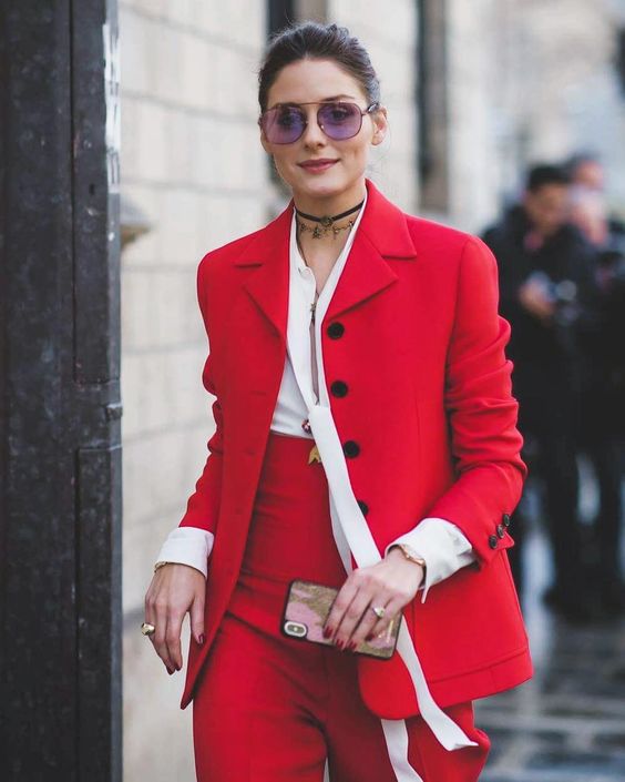 Olivia Palermo non è certo una sconosciuta per il mio blog, anni e anni fa avevo scritto un post sul suo stile sempre impeccabile. A distanza di tempo, la nostra cara trend setter si dimostra una vera e propria icona di stile intramontabile da cui ciascuna di noi può prendere esempio. Stavolta l’outfit che mi ha fatto battere il cuore è costituito da un completo rosso dal taglio maschile. La bella Olivia è stata vista con questo look durante la settimana della Haute couture Parigina, un’occasione durante la quale non si può certo passare inosservate. Quale colore migliore se non il rosso? Il rosso scelto in questo look inoltre è un rosso molto acceso che illumina il suo colorito baciato dal sole. Un look perfetto per ragazze dai capelli biondi come Olivia, ma anche per chi ha i capelli castani o platino questo è un outfit che urla “sono sicura di me“. Olivia ha sapientemente abbinato questo completo dal taglio un po’ androgino con una camicetta bianca estremamente femminile e un paio di stivali alti color carne che slanciano la sua figura.Ma come replicare l’outfit col completo rosso di Olivia Palermo?