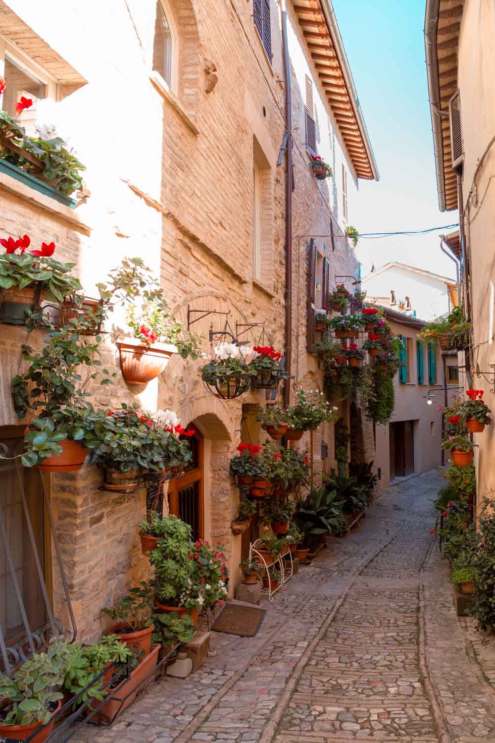 Le vie di Spello sono per gli animi romantici, per chi ama soffermarsi sui piccoli particolari e ha gli occhi luminosi di fronte a un vaso di fiori.