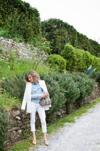 Il primo giorno di Pitti con bretelle e pantaloni a vita alta in vero stile “Gian Burrasca” e due trecce mezze disfatte alla Pippi Calzelunghe: un outfit che ho amato perché a metà tra il giocoso e il professionale (che