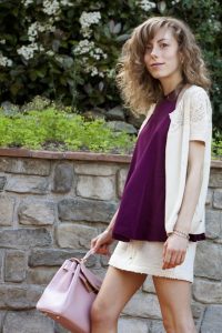 Un top di seta fatto da me, una borsa blu e un paio di orecchini vintage a cui sono affezionatissima per un outfit a prova di caldo indossato ieri pomeriggio. A silk top made by me, a blue bag and